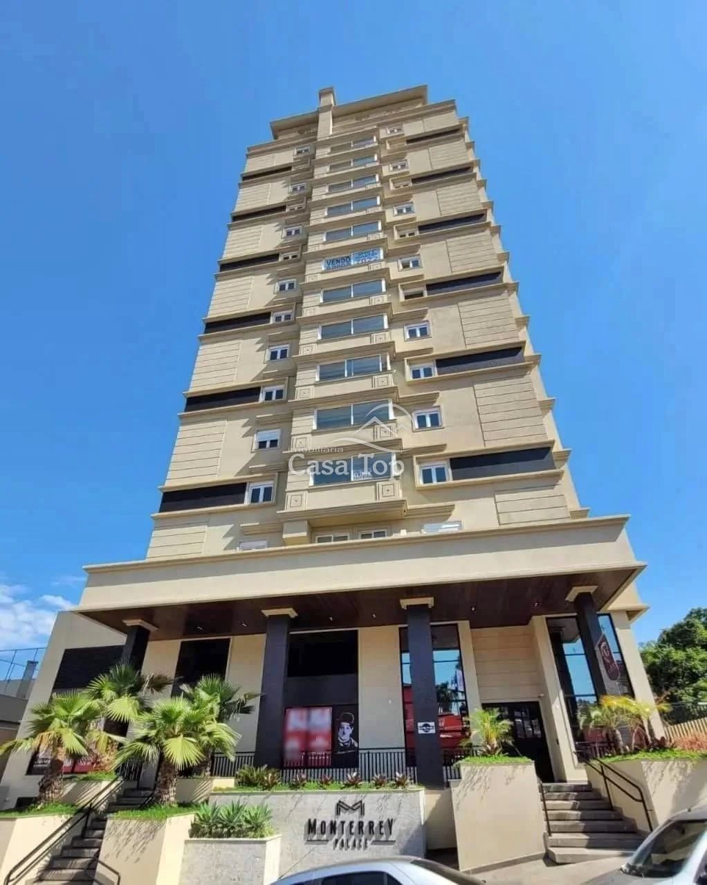 Apartamento no Edifício Monterrey Palace, medindo 92m², contendo 2 quartos (sendo 1 suíte), sala para 2 ambientes, cozinha integrada com a churrasqueira, área de serviço, BWC social e 1 vaga de garagem.