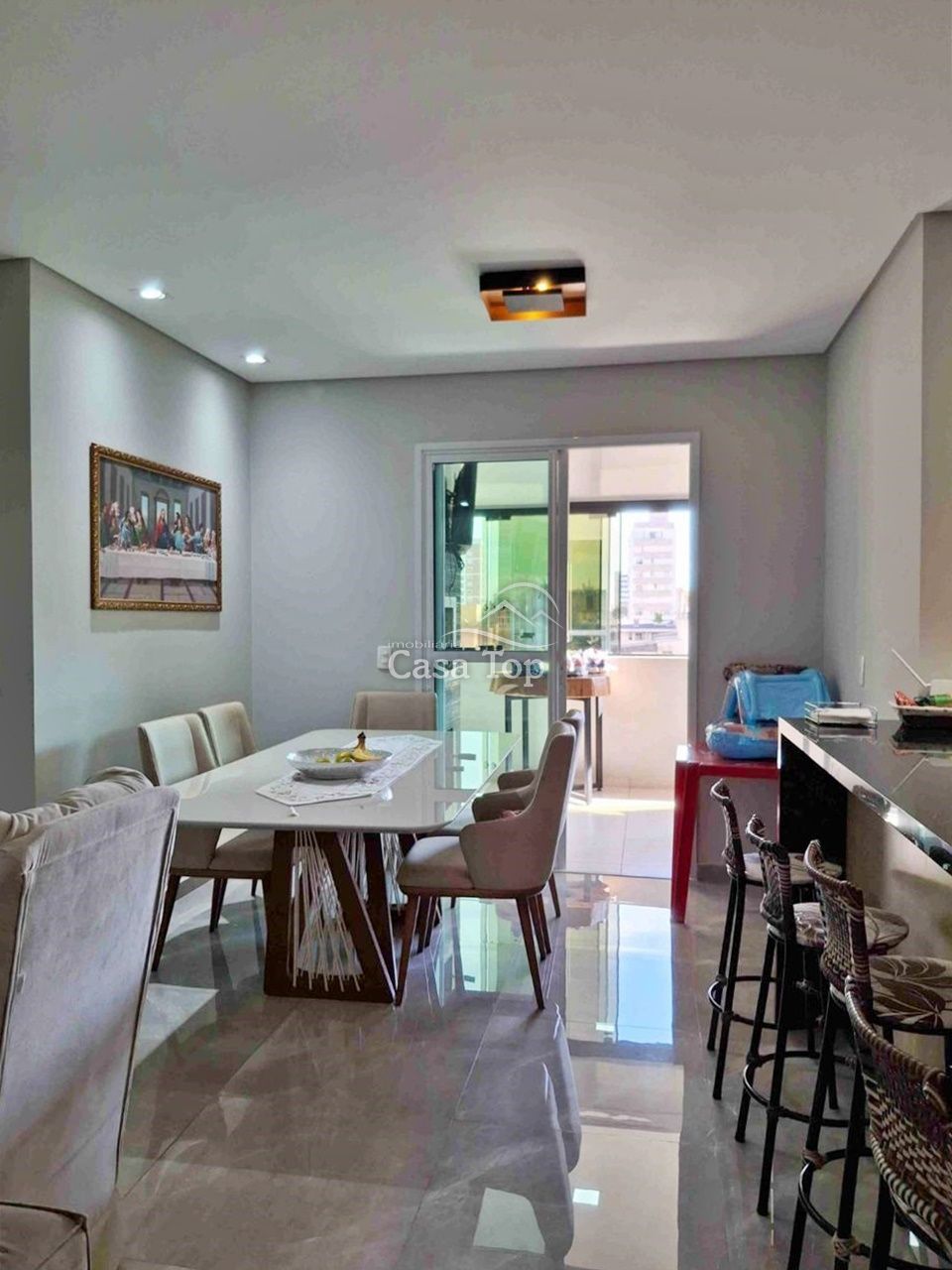 Apartamento semimobiliada medindo aprox. 240m², contendo 3 quartos (sendo 1 suíte), sala para 2 ambientes integrada com a cozinha, sacada com churrasqueira, área de serviço, BWC social, lavabo e 1 vaga de garagem.