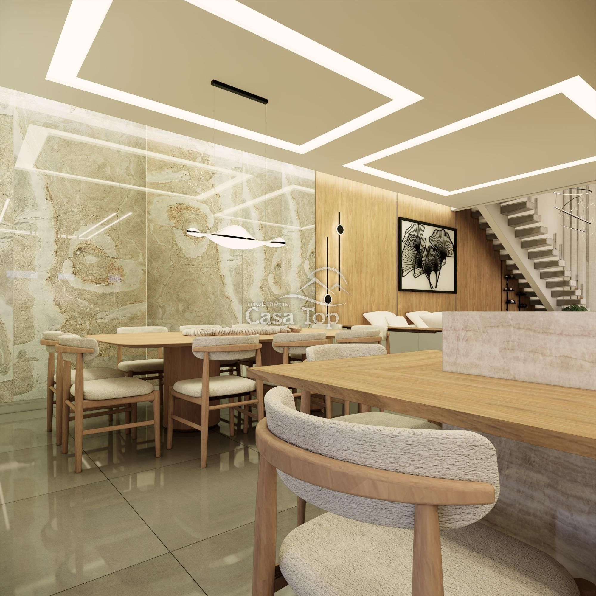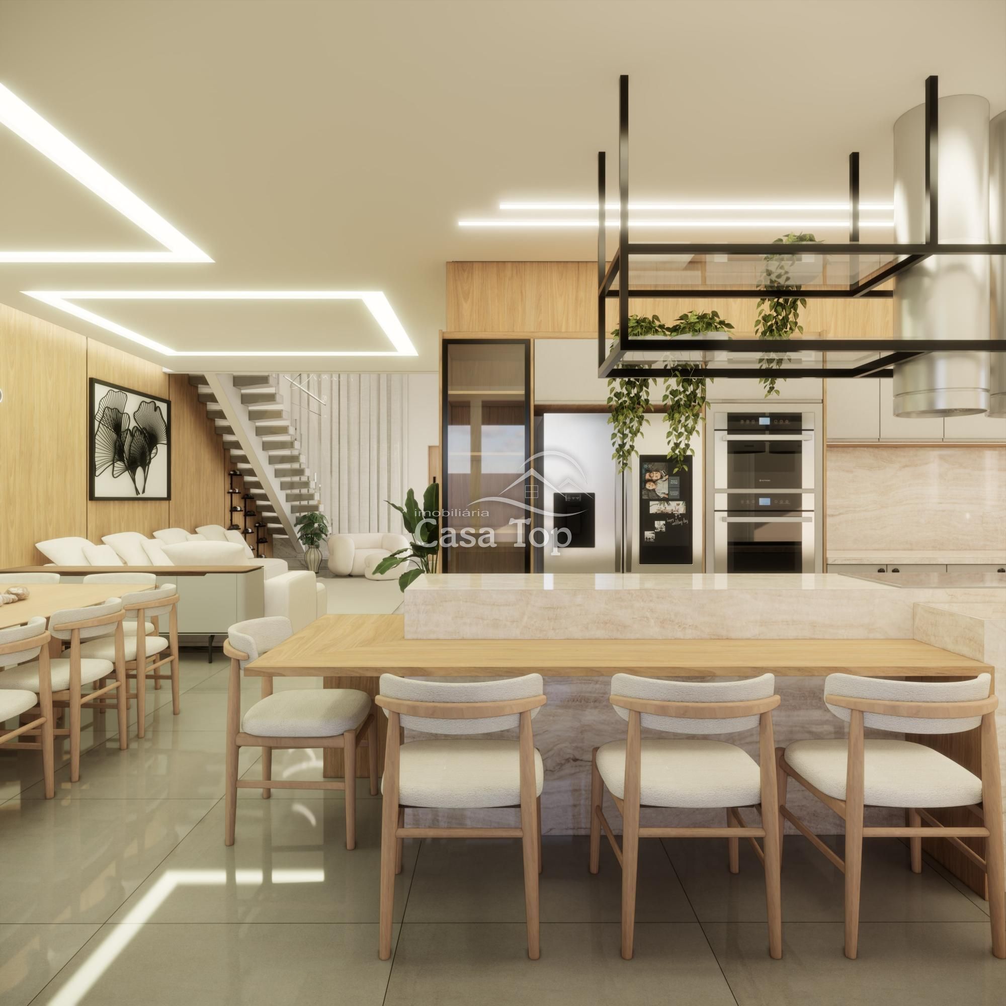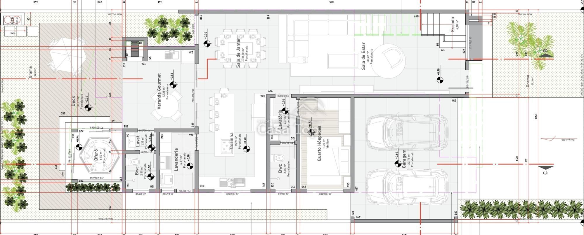 Piso Inferior: 1 quarto, sala de estar, sala de jantar, cozinha, espaço gourmet, espaço nos fundos, 2 BWC's sociais e 4 vagas de garagem (sendo 2 cobertas).