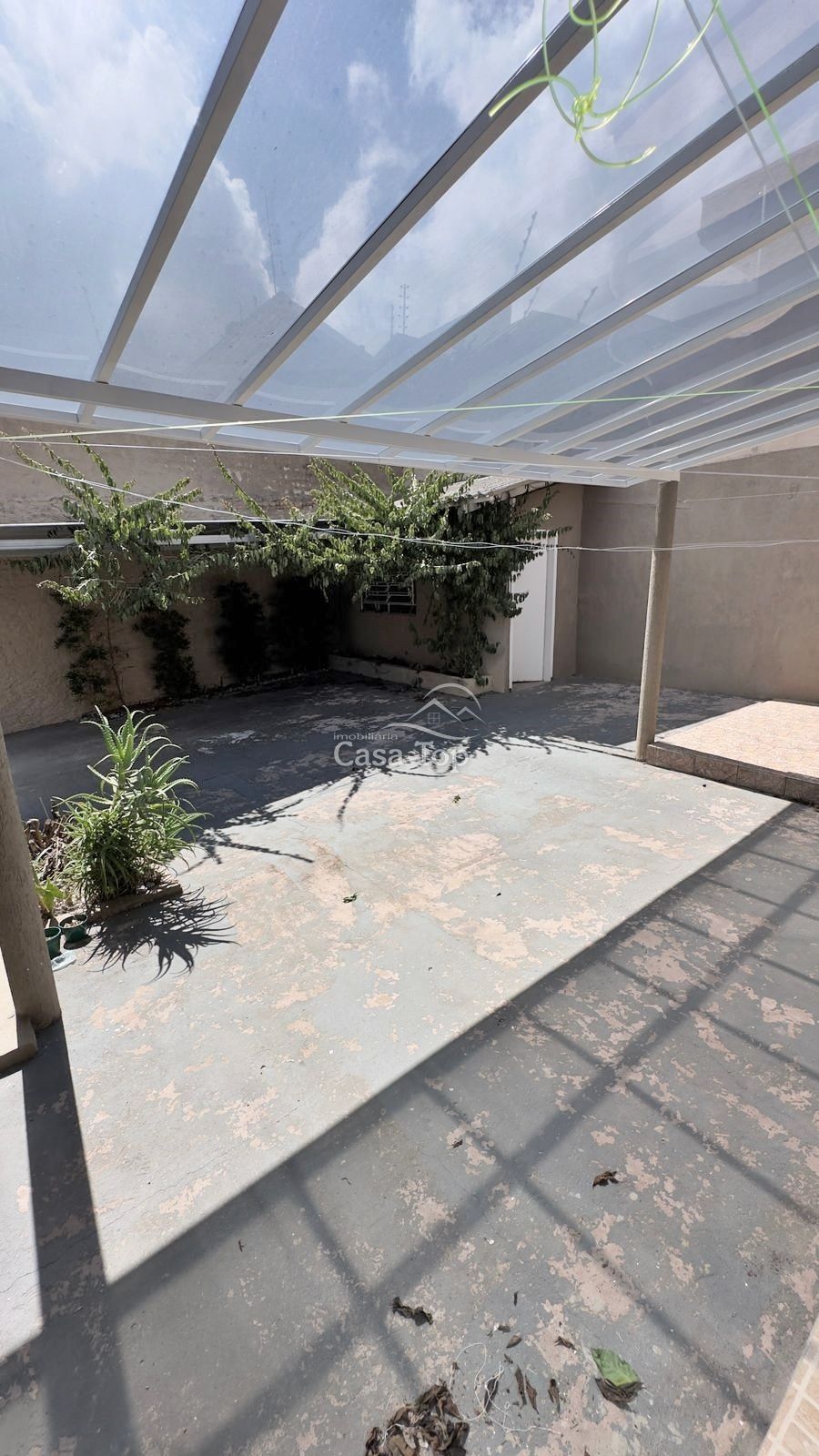 Casa medindo aprox. 100m² de área construída, contendo 4 salas, cozinha, área de serviço, 2 BWC social e 2 vagas de garagem.