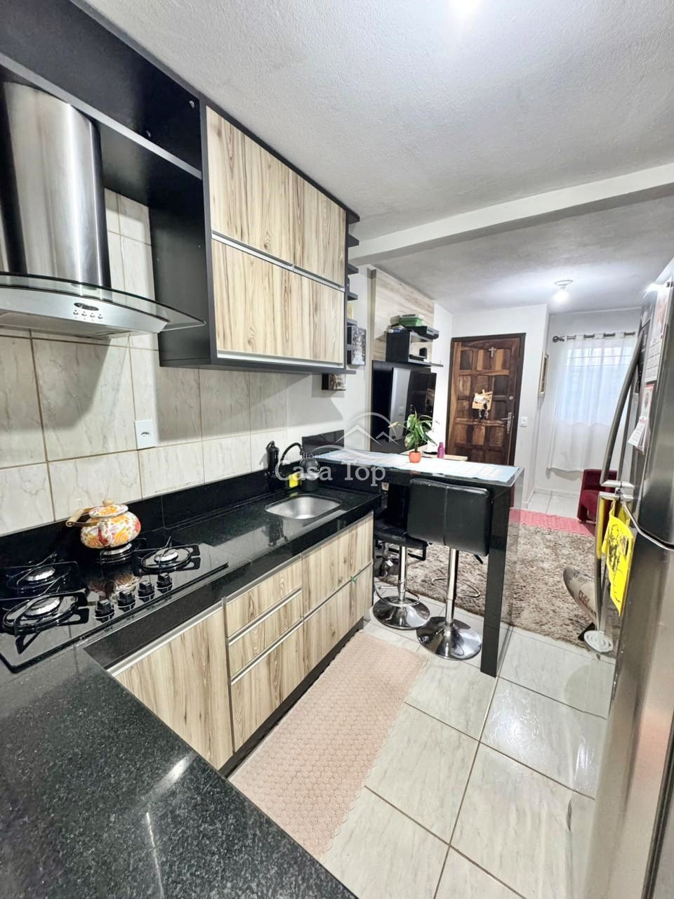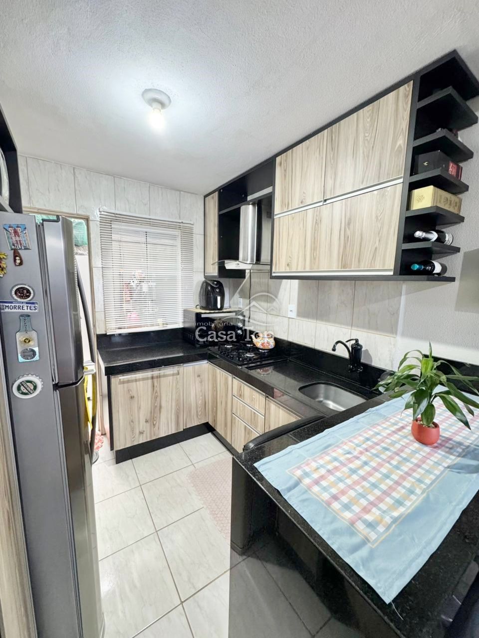 Sobrado medindo aprox. 65m², contendo 2 quartos, sala, cozinha com móveis planejados, área de serviço, lavabo, BWC social e 2 vagas de garagem.