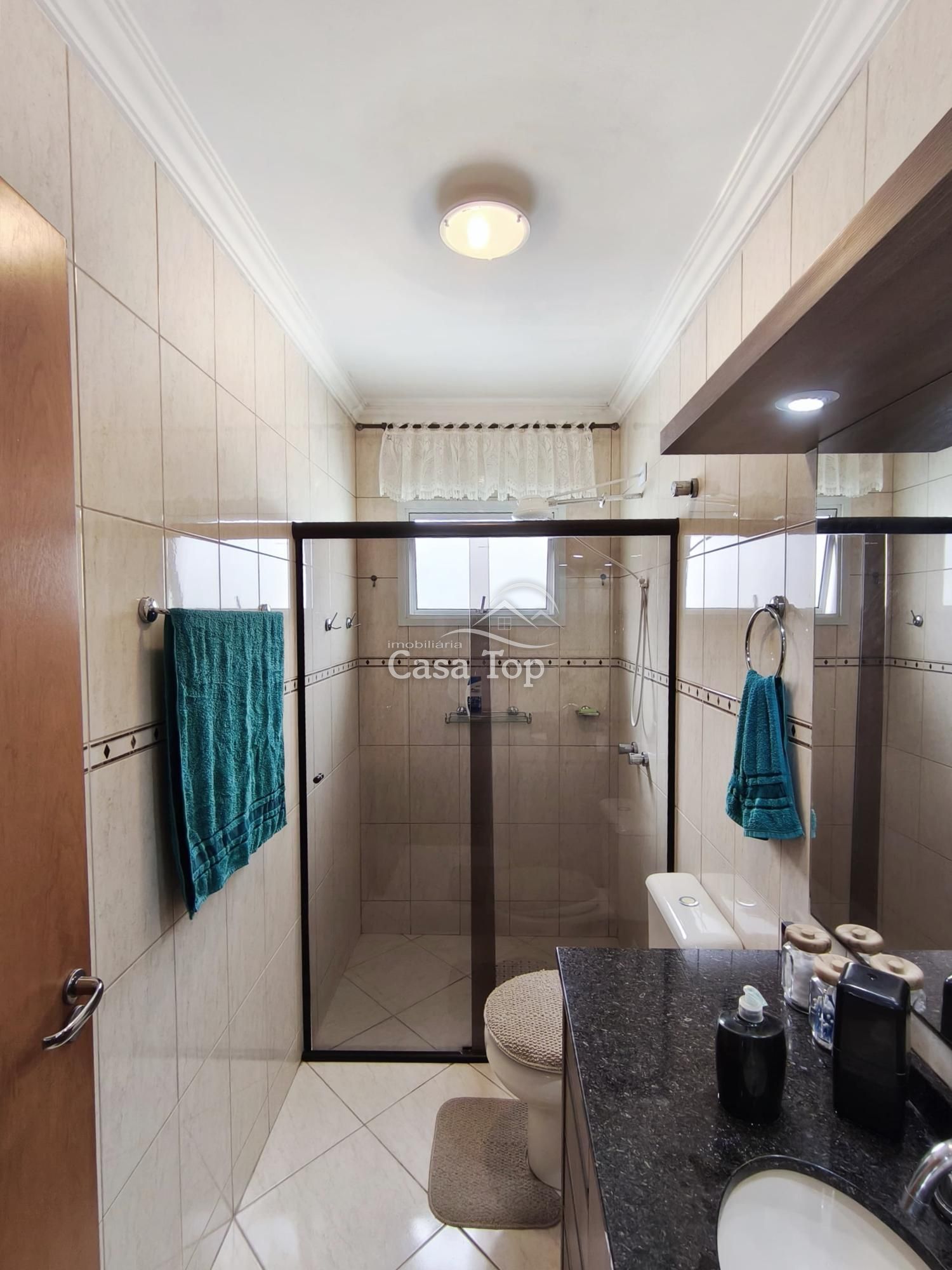 1 banheiro social com móvel planejado.