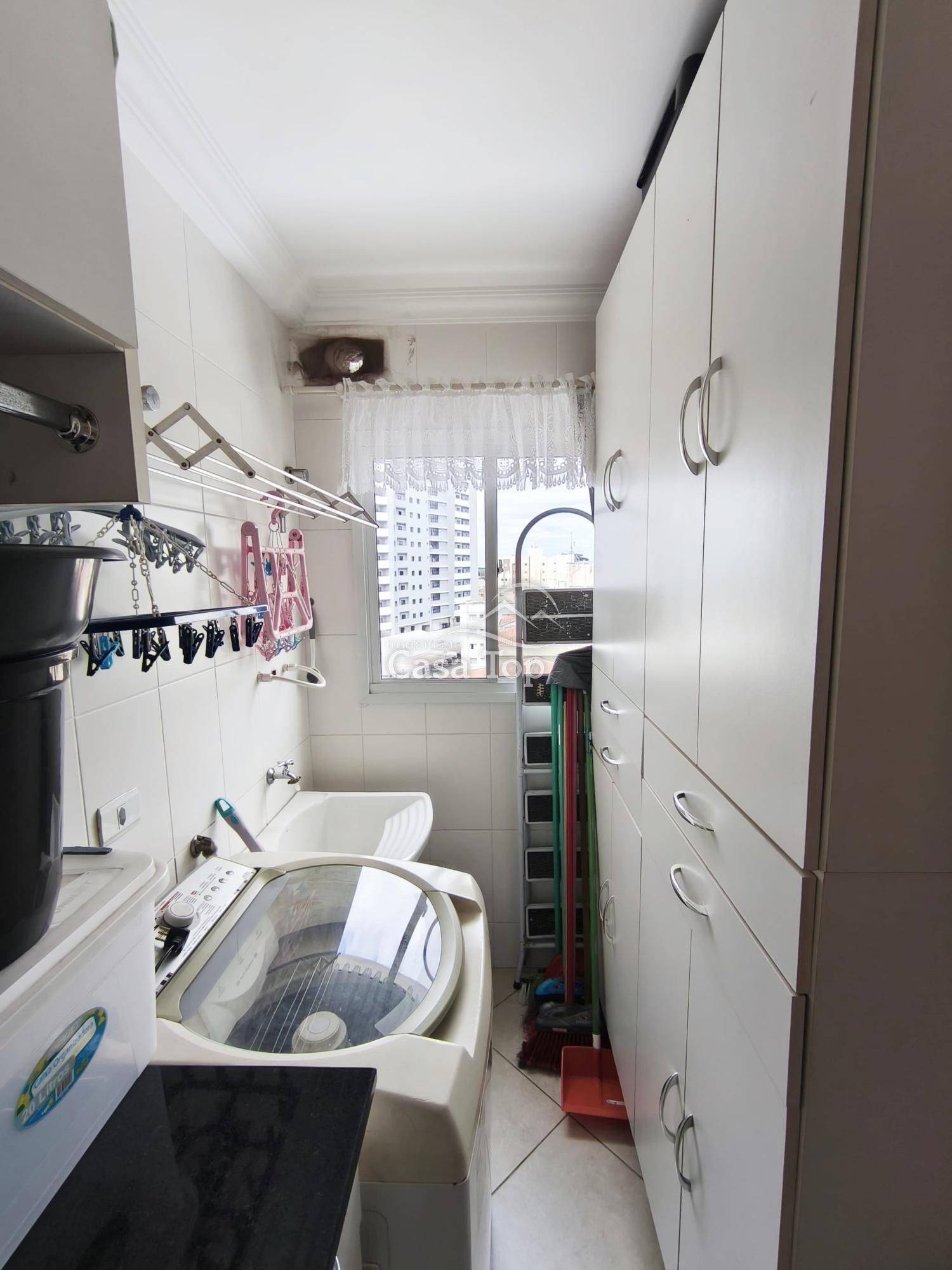 Cozinha e lavanderia com móveis planejados.