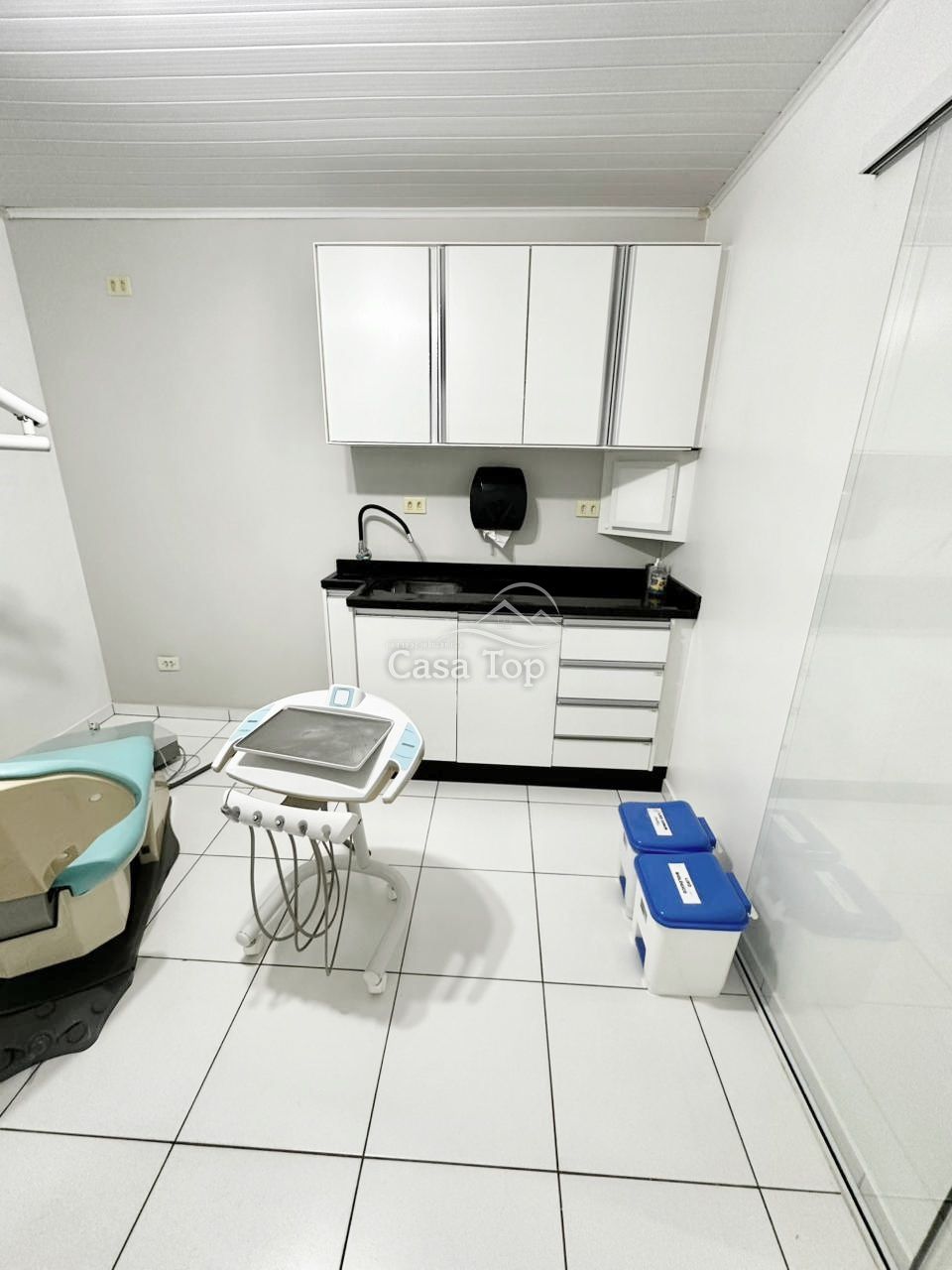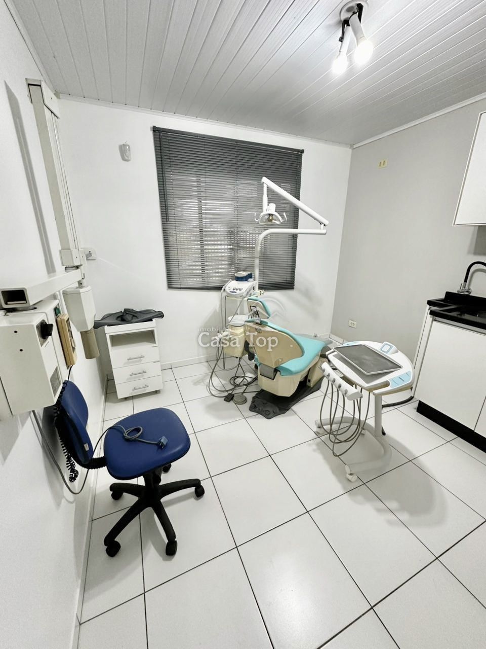 Consultório odontológico já montado medindo aprox. 100m², incluído cadeira, raio X, recepção com móveis planejados e uma segunda sala já com ponto de água, 3 BWC' sociais e 3 vagas de estacionamento rotativas.
