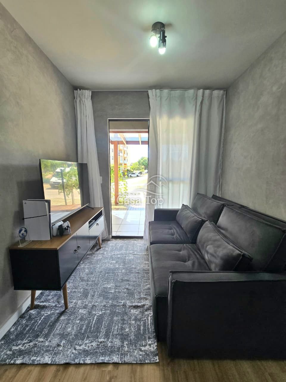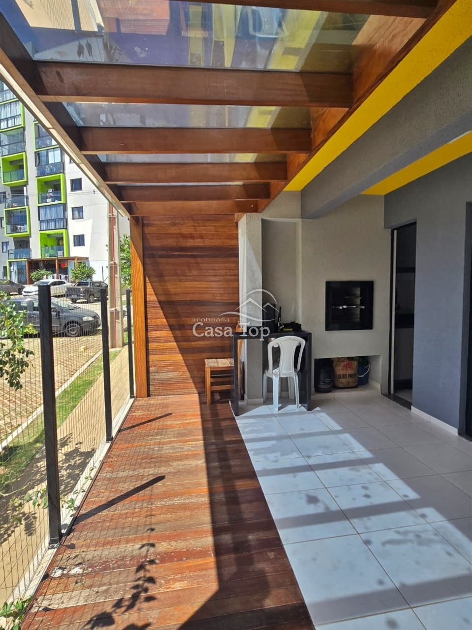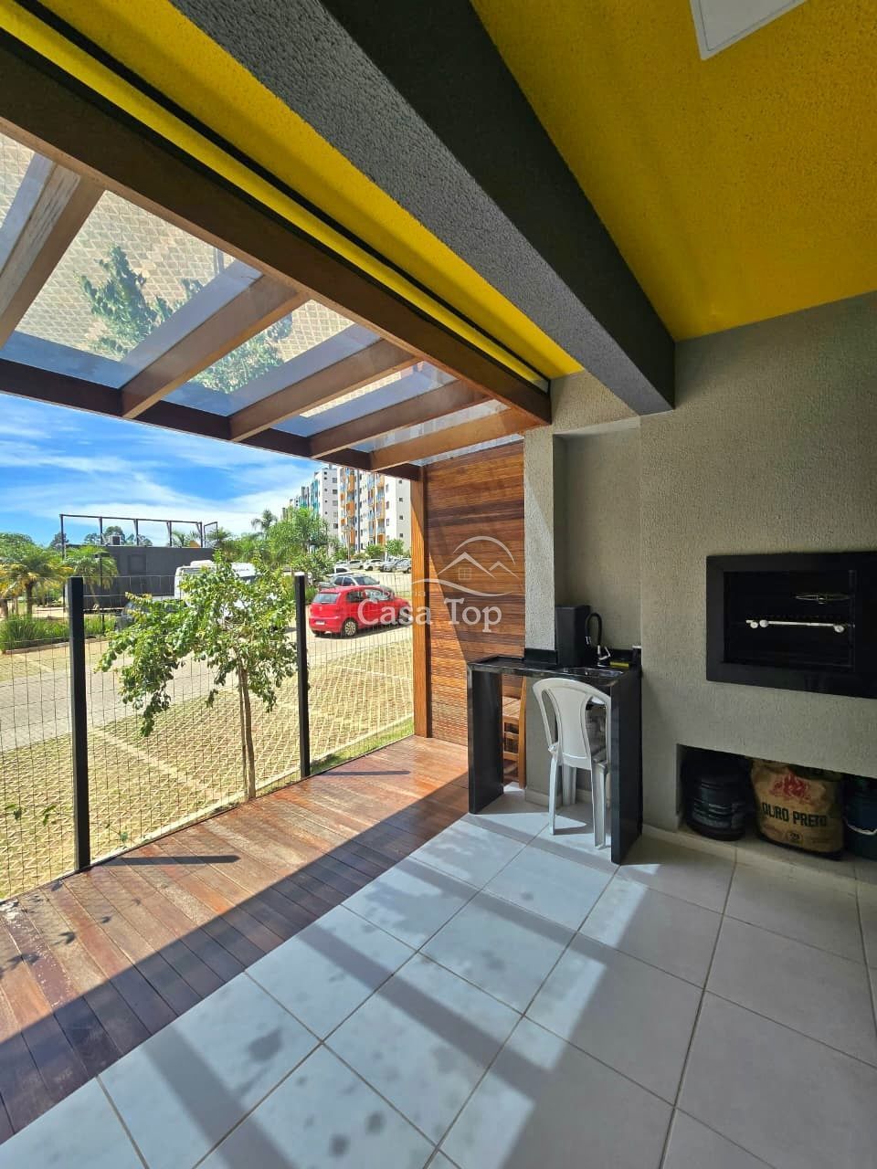 Apartamento semimobiliado medindo aprox. 84m², contendo 3 quartos (sendo 1 suíte), sala integrada aos ambientes, cozinha com móveis planejados e eletrodomésticos, área externa privativa com churrasqueira e pergolado, área de serviço, BWC e 1 vaga de garagem coberta.