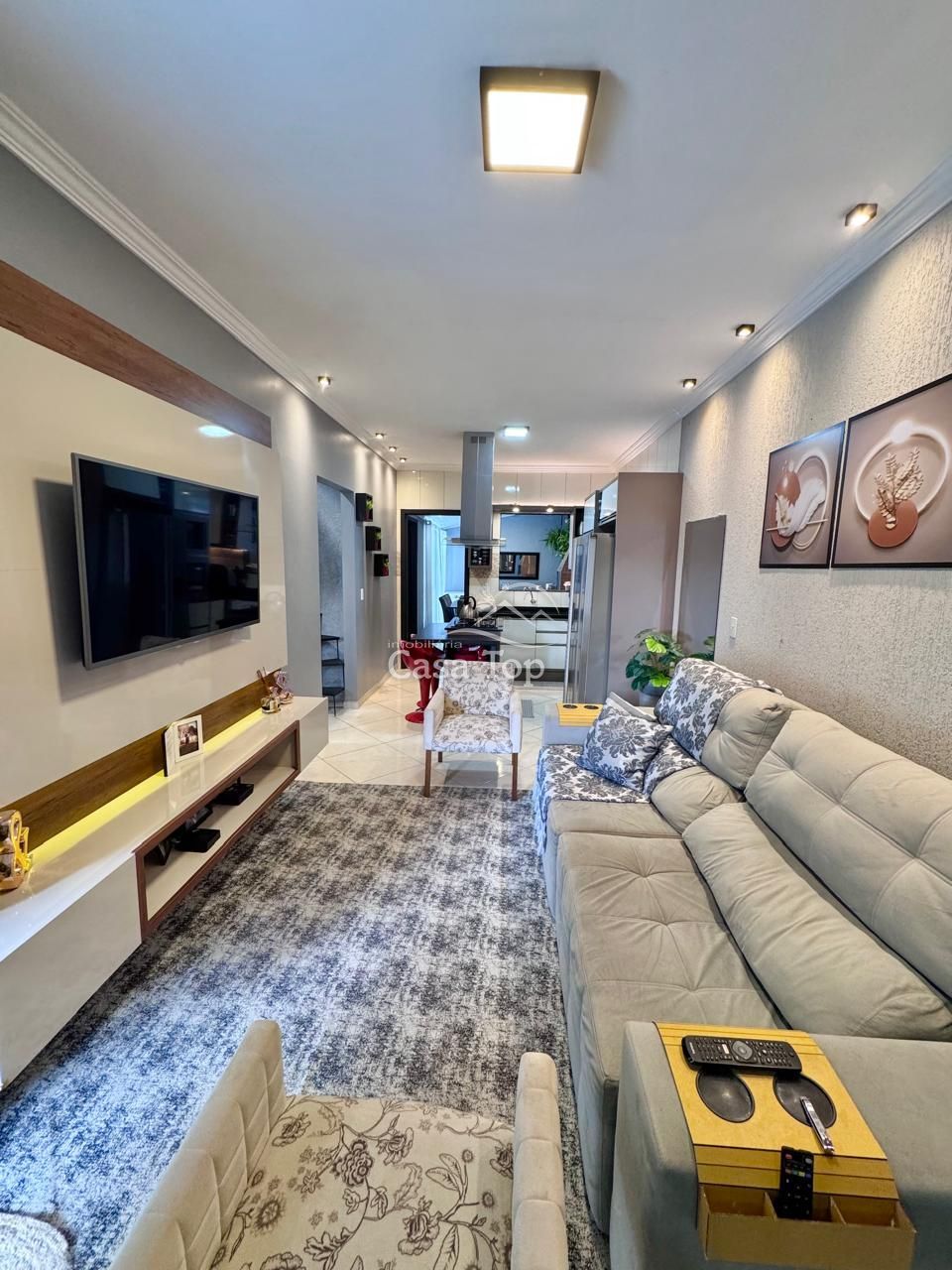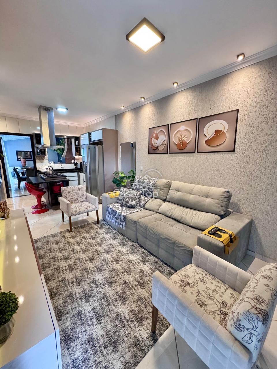 Sobrado medindo aprox. 110m², contendo 4 quartos (sendo 1 suíte), sala para 2 ambientes, cozinha, área de serviço, área gourmet, BWC social, e 2 vagas de garagem.